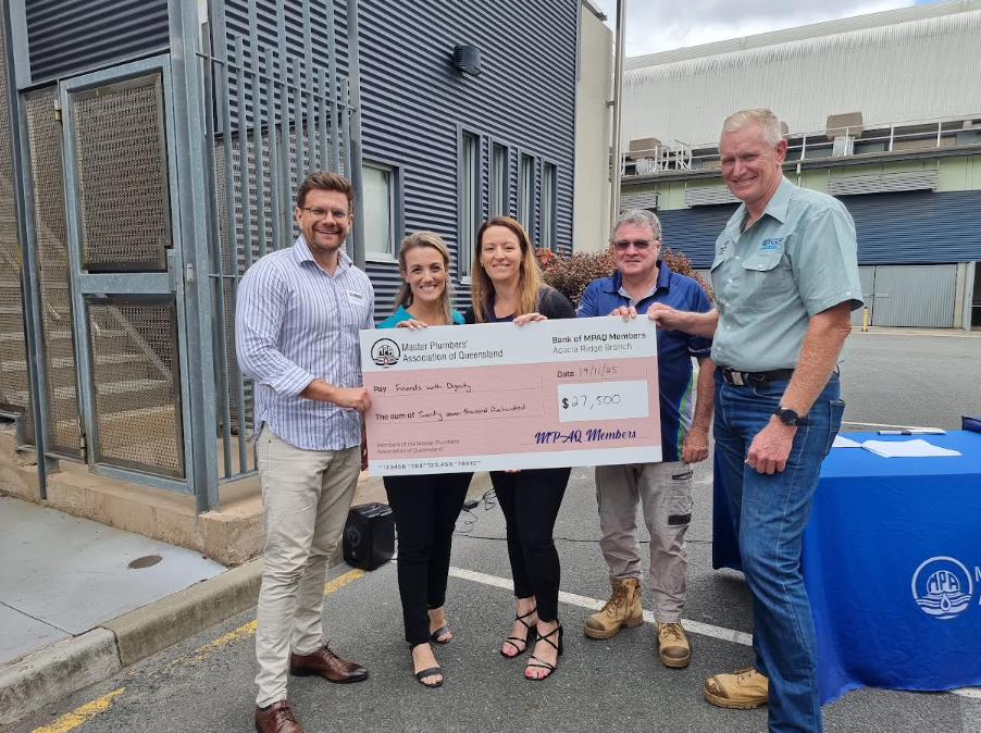 Plumbers across Queensland raised 27500 dollars for Friends with Dignity to help ten families rebuild safe and stable homes.