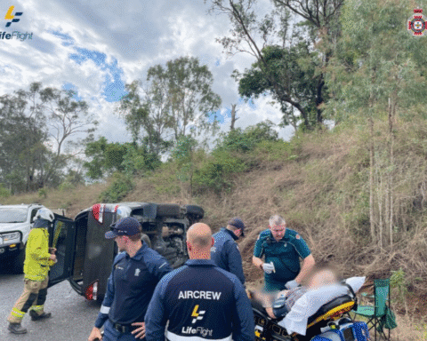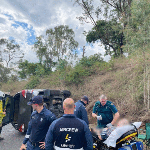 A Bundaberg-based LifeFlight crew airlifted a man in his 70s to hospital after a two-vehicle crash near Gladstone.a