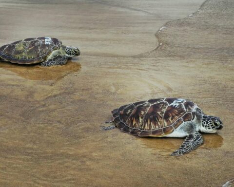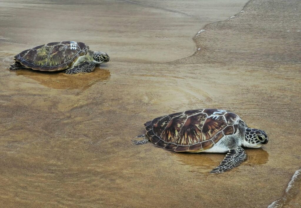 Kyle and Maylee return to the ocean as Quoin Island Turtle Rehabilitation Centre marks the release of turtles 400 and
