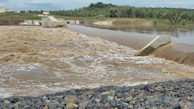 Locals watched floodwaters surge over the Rockhampton weir as cattle are moved early and river levels continue to rise.