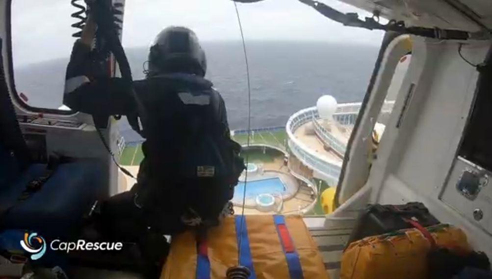 At about 10.30 am, CapRescue was tasked to the Crown Princess cruise ship for a primary winch rescue following a critical medical event.